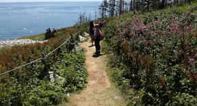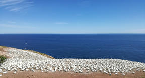 Une île autrefois habitée par 35 familles, pas d eau potable, 15 kms de sentiers pédestres à travers champs de fleurs la côte ou la forêt… Une île achetée par le gouvernement du Canada pour préserver ce lieu unique au monde de migration des fous de Bassan.