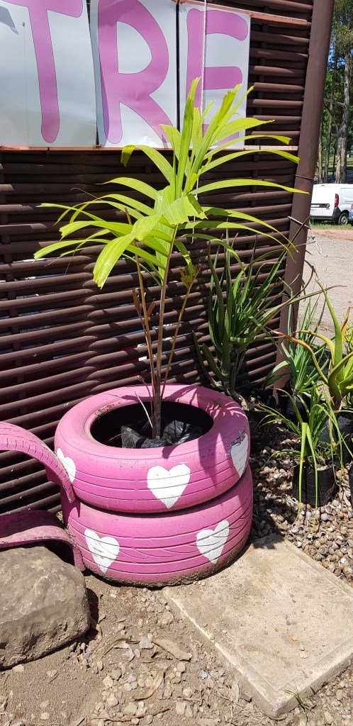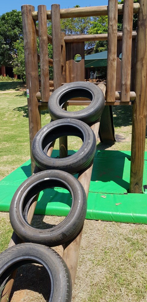 Ils ont une utilisation des pneus incroyable … dans le jardin, sur les aires de jeux …Ils ont une nourriture variée et excellente, toutes les nationalités sont représentées : japonese, portugese, french, american …Le moindre endroit, restaurant, bar, boutique ..La décoration simple est belle et les matériaux utilisés de belle qualité. Enfin les maisons sont confortables, les jardins soignés pour les privilégiés mais trop, beaucoup trop de townships aux abords des villes ou disséminés dans les collines …Le gouvernement remplace les tôles par des maisonnettes, espérons que bientôt ce pays si beau, si attachant gommera à tout jamais ses horribles verrues et donnera à tous des conditions décentes d’habitation.
