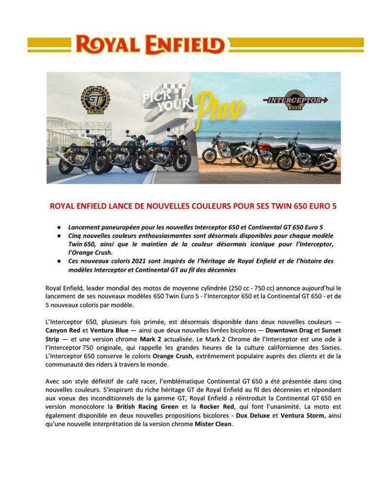 2020 : Royal Enfield est leader mondial sur le segment des motos moyenne cylindrée