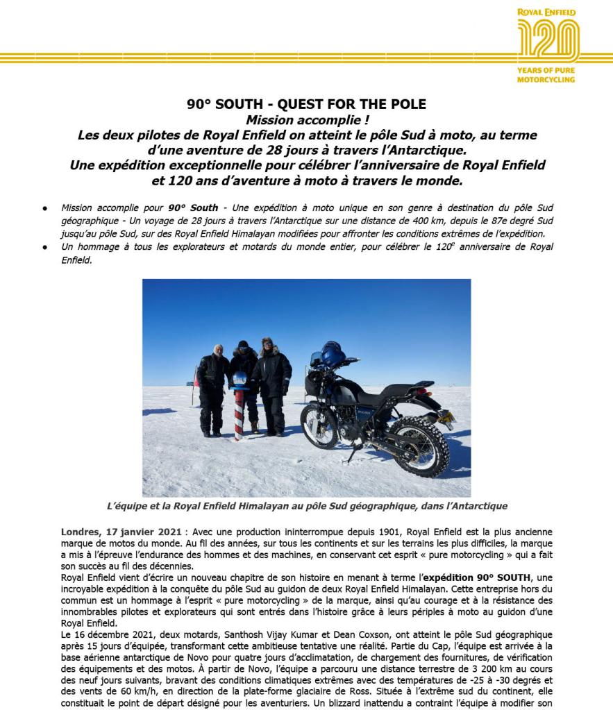 Un Communiqué de Presse qui raconte cette aventure incroyable au Pôle Sud : 3200 kilomètres par -25 dans des conditions extrêmement difficiles. 2 pilotes qui sont allés au bout d’eux-mêmes pour réussir cette performance.