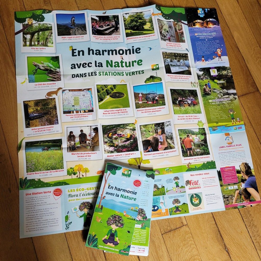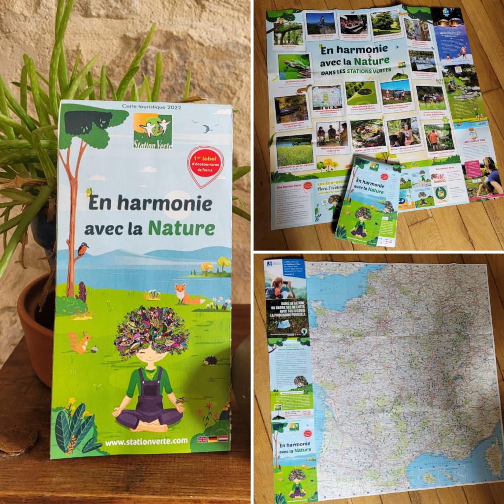 Au dos de la carte on trouve plein d’incitations pour des expositions, visites de sites, ateliers, parcours, hébergements insolites …en harmonie avec Dame nature.