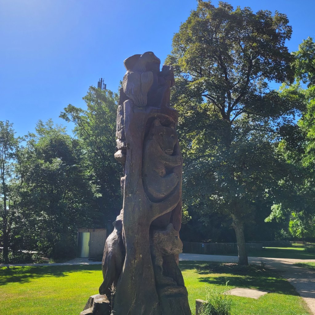 Un parc à proximité des écoles et tout est ludique : un jeu de l’oie pour apprendre les mécanismes naturels de la faune et de la flore, les ruches, la mare et ses grenouilles, ses troncs d’arbres coupés pour le refuge des insectes, des prés non tondus, de magnifiques sculptures en bois…