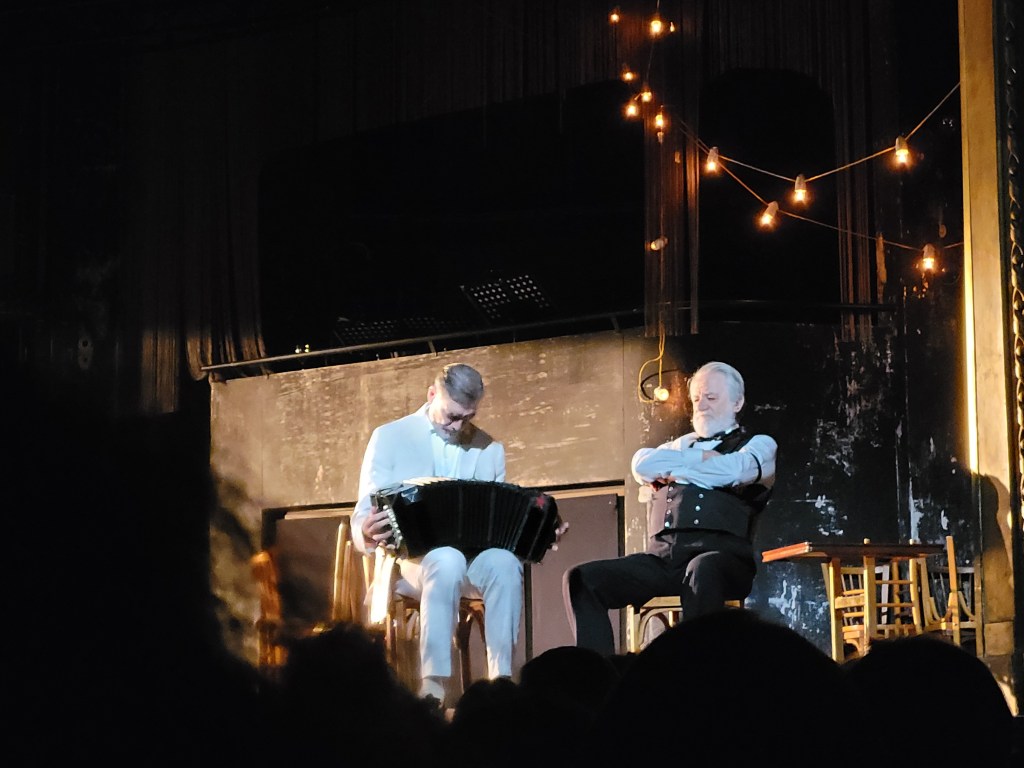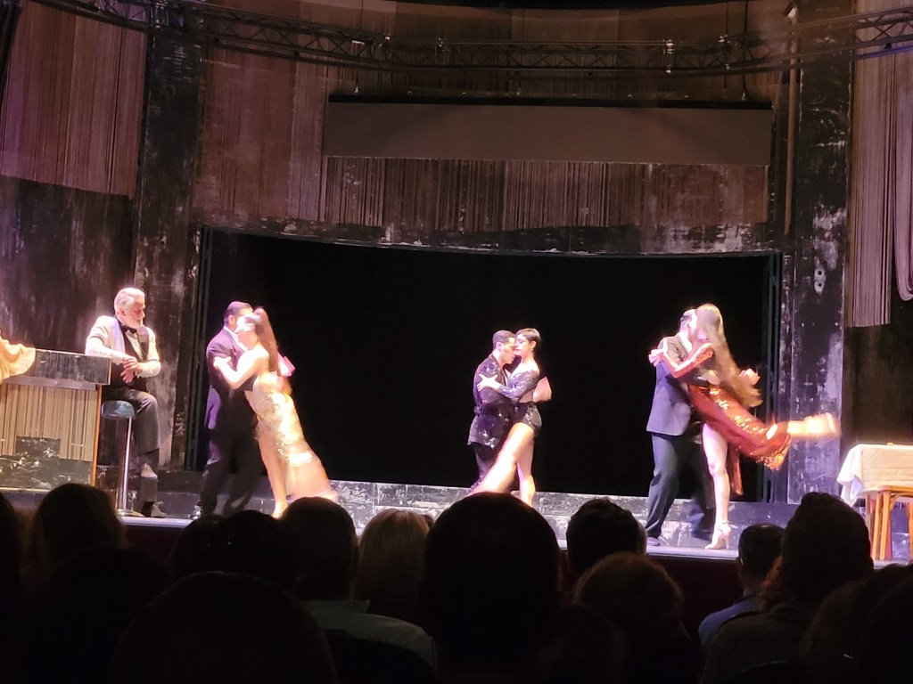 Les critiques sont élogieuses : époustouflant, un voyage envoûtant… au Théâtre Marigny à Paris. Et c’est vrai. Audébut vous êtes pris par surprise : des images défilent, les comédiens parlent, c’est traduit et c’est relativement lent. Progressivement les personnages se mettent en place. On comprend que nous sommes dans un milongo à Buenos Aires : un bar et une piste de danse. Puis le tango traverse l’histoire du pays. cette Argentine qui a connu la dictature, la disparition de milliers de personnes, ces mères qui pleurent… Les comédiens racontent une histoire d’amour perdu, cette survie, cette musique de Solal et de Philippe Cohen qui vous prend aux tripes. Vous êtes ailleurs, le coeur serré, vous dansez ce tango, vous ressentez ces vibrations et les incroyables performances des comédiens. c’est prodigieux !