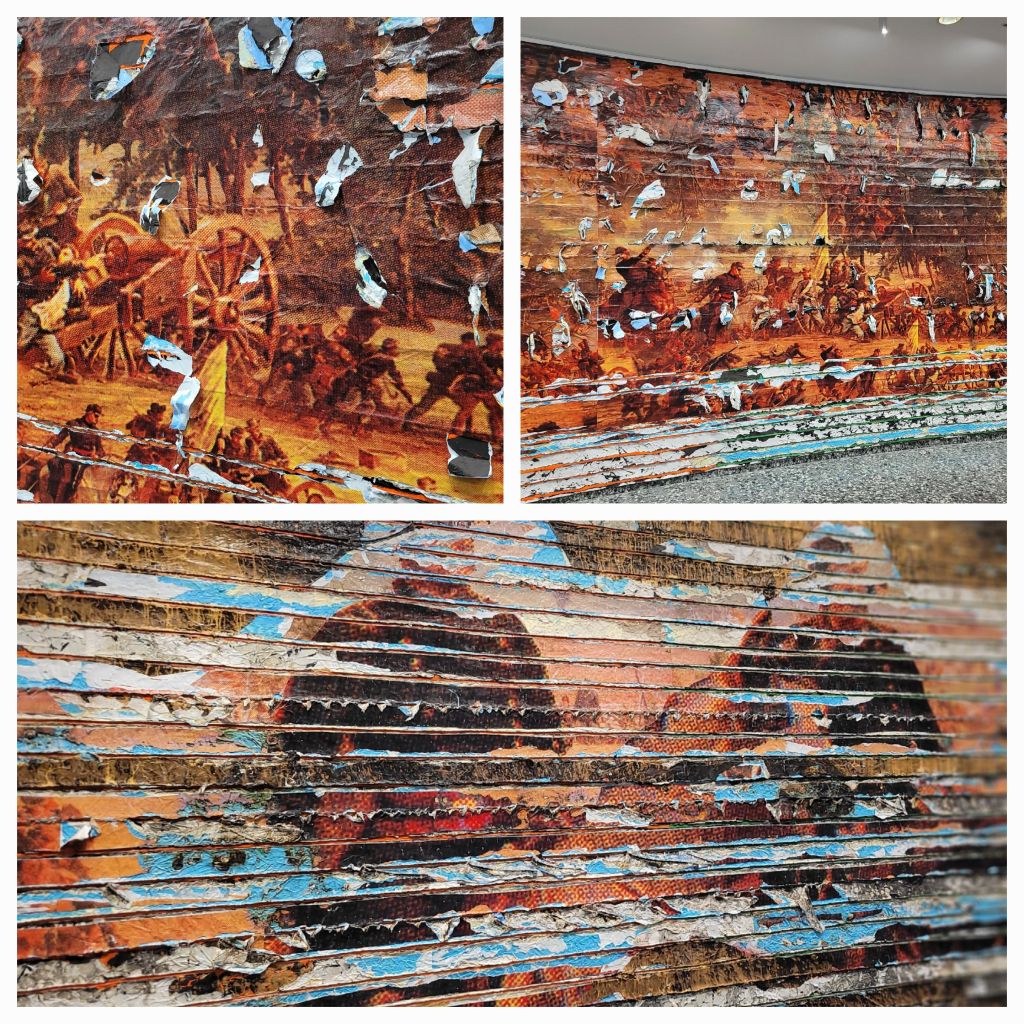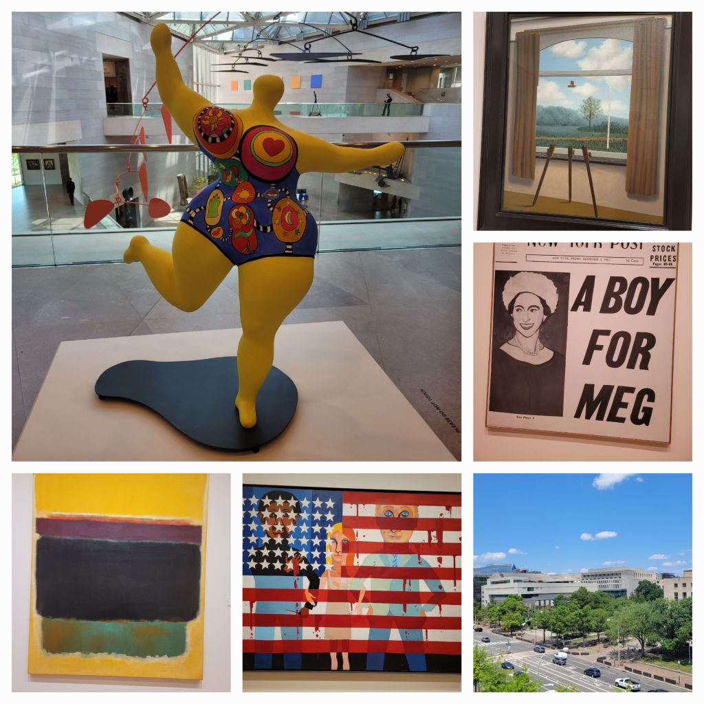 Première visite : le Musée Hirshhorm. Entrée gratuite- Un bâtiment en rotonde avec des oeuvres éclectiques .Des œuvres magnifiques et au 2e étage l artiste Mark Bradford qui retrace en 7 panneaux géants la guerre de sécession.