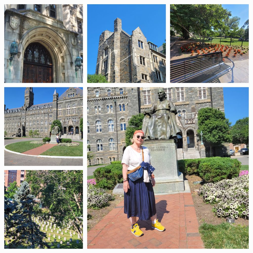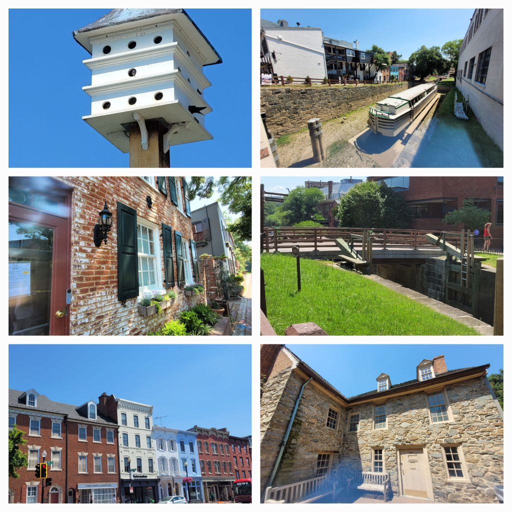 C est le quartier branché de Washington. Le site historique avec des maisons du XVIIIe siècle. La ville était coupée en deux. Le bas était occupé par les populations pauvres et laborieuses qui travaillaient sur les bateaux et les nantis étaient sur la colline. Aujourd’hui toutes les maisons valent de 1 à 3 millions de dollars. C est un Havre de paix et de verdure. Un chemin de halage qui longe le Potomac, la plus vieille maison en pierre de la ville , le reste d une écluse ( il y en avait 75) et de ravissantes boutiques. On trouve les traces d un ancien tramway dans les rues. On apprend que Barak Obama l ancien Président des USA y vit. Il a fait ses études de droit à l université de Georgetown, l une des meilleures du pays. Une bonne journée de détente. Et toujours 15 kilomètres de marche chaque jour !!!