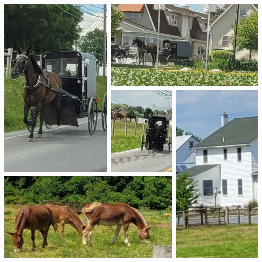 La Pennsylvanie plus boisée que la Virginie. Nous arrivons à Lancaster, tout le cœur de la ville en briques rouges. Il fait 40, peu de monde dehors. Nous allons jusqu’ ‘au Amish village mais nous ne rentrons pas. Il s’agit d un safari amish à travers leurs plantations. Cela ne nous plaît pas. On se contentera de ce bonnet tourné à l ombre d un arbre. J aurai aimé discuter avec eux. Je n aurai pas aimé avoir 12 enfants bien que mon film préféré soit la mélodie du bonheur. Je n aurai pas aimé que mes enfants arrêtent leurs études à 14 ans pour travailler dans la plantation. J aurai voulu savoir si certains quittaient la plantation, s ils étaient heureux. Et j aurai voulu discuter du progrès, de ses effets sur nos vies et de leur connexion à la terre, cette terre que nous oublions trop souvent. Nous en croisons de nombreux à calèche.