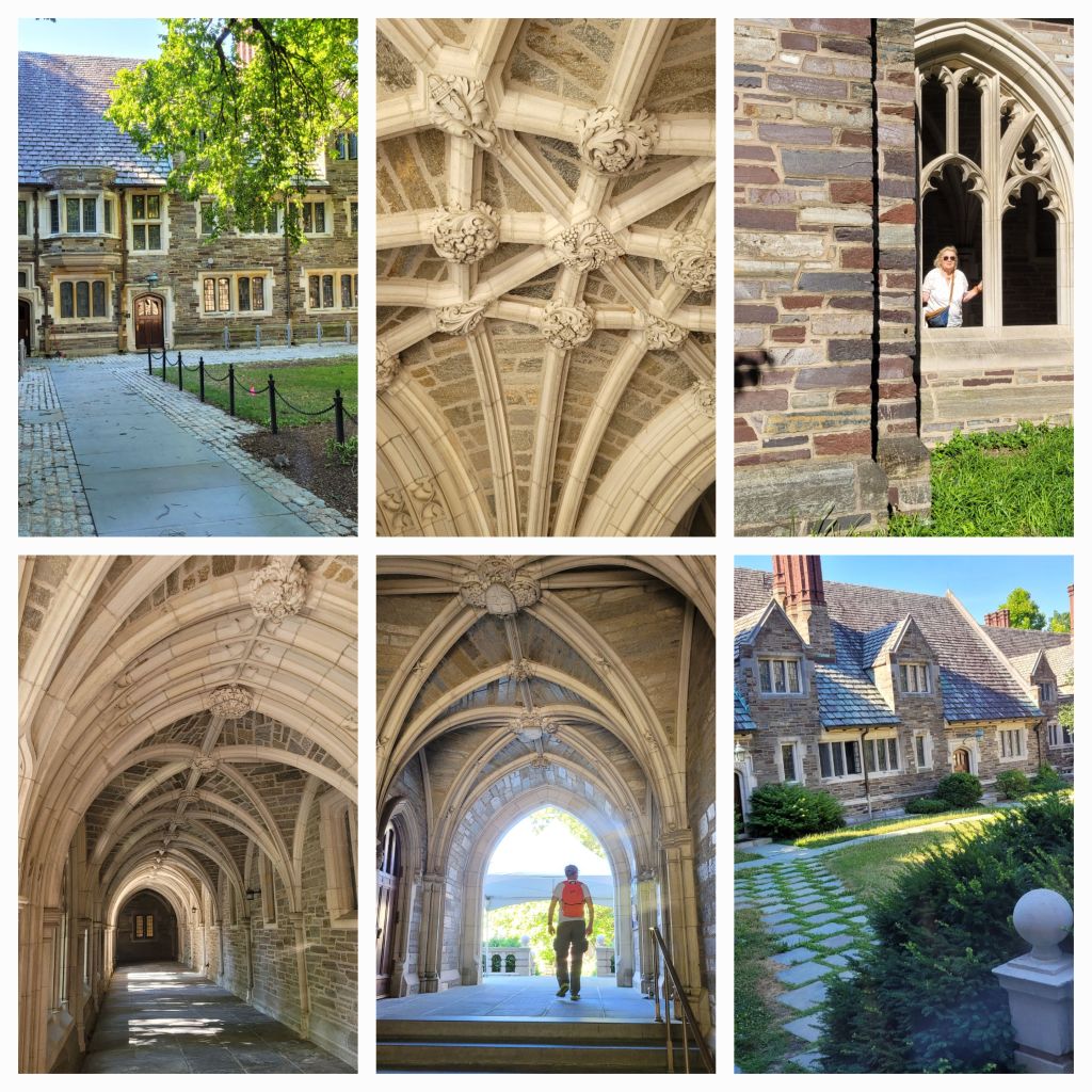 Universite de Princeton = c est waouh !!! 240 hectares et 200 bâtiments ! Le réceptionniste à l hôtel à qui nous demandions le chemin pour l université nous a répondu : » l université c est la ville ! » En effet cette université est le cœur de la ville et c est tout simplement prodigieux. La chapelle est extraordinaire. Elle permet d’accueillir 2000 étudiants. Partout des endroits pour étudier, se détendre. C est le congé estival des étudiants et nous déambulons tranquillement entre les différents bâtiments. Les boutiques de la ville rassemblent les plus belles marques. Les cafés, bakery et restaurant sont accueillants et gourmands. Pour une maison à Princeton comptez entre 2 et 3 millions de dollars .