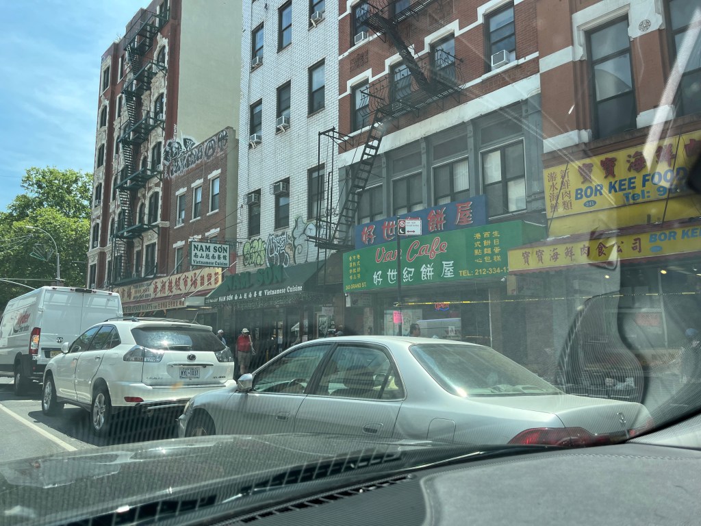 Nous avons roulé sur Chinatown, pris le pont Williamsburg Bridge, assisté à la sortie des classes à 15 heures et à la valse des bus scolaires. Nous nous somme retrouvés à Brooklyn dans le quartier juif orthodoxe. Nous avons pris l Interstate puis nous en sommes sortis tant il y avait du monde.