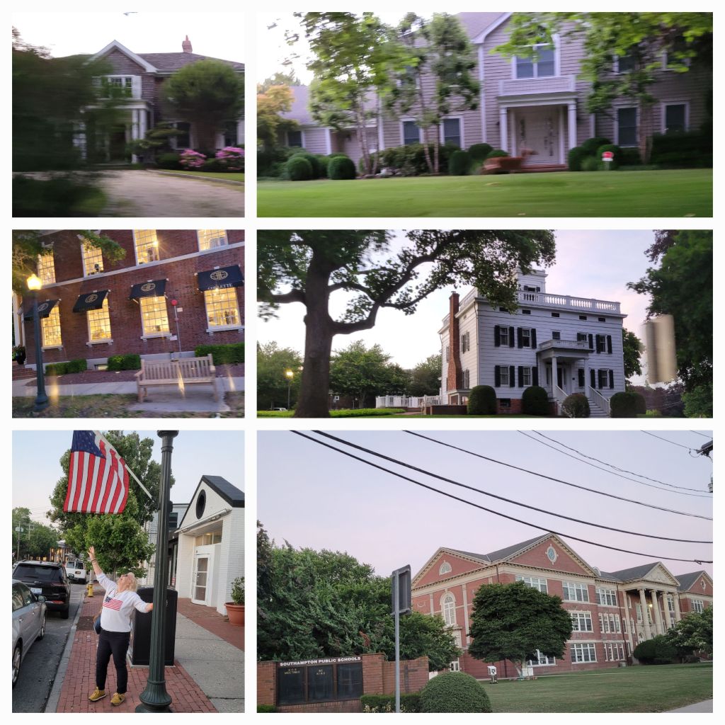 Nous partons pour East Hampton. Un coeur de ville avec des boutiques avec ou sans 1 étage. Nous découvrons le shopping sans prix ! Ici on n’affiche aucun prix en vitrine, c’est presque une question obscène ! Nous comprenons la réputation des Hamptons, la upper classe américaine, ce rêve américain pour ceux qui ont réussi. Ils viennent par hélicoptère, jet privé ou par yacht. C’est « un entre soi » à l’échelle d’une île. Les maisons rivalisent de grandeur et d’éclat. Le golf ultra privé a des points de vue exceptionnels. C’est beau mais …ça semble irréel… pas la vraie vie qui permet la diversité, le partage, le mélange. Les caissières, servantes, nurses, jardiniers … sont tous mexicains ! Nous laissons une famille d’oies traverser. C’est le paradoxe de cette île : habitée par une certaine classe et en même temps dans son jus car restée très sauvage. Nous croiserons de nombreux daims tout au long de notre route.
