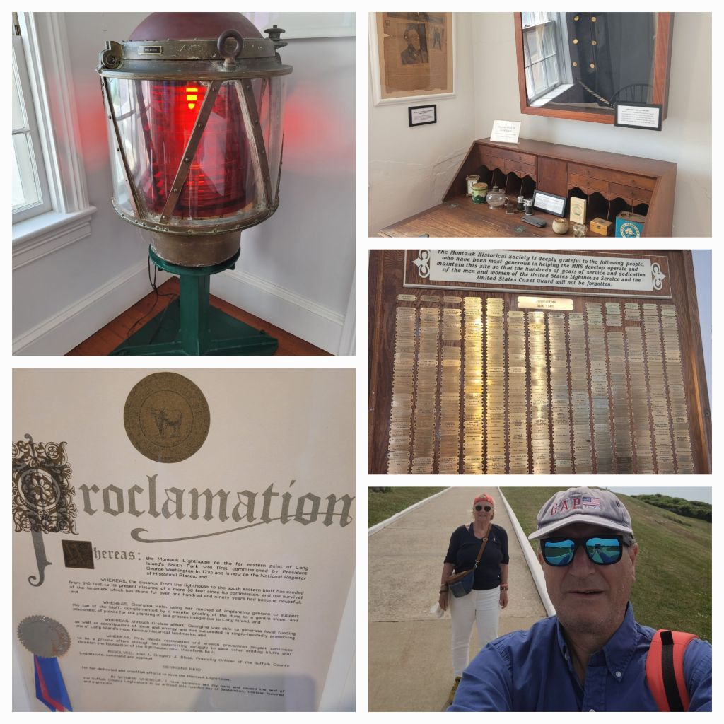 La construction du phare a été autorisée par le deuxième Congrès des États-Unis, sous le président George Washington, le 12 avril 1792. La construction commence le 7 juin 1796 et se termine le 5 novembre 1796. Des travaux de modernisation sont régulièrement effectués et le phare est électrifié en 1940. Pendant la Seconde Guerre mondiale, le phare est pris en charge par l’armée américaine dans le cadre du bouclier de défense de la côte Est. Le 30 septembre 1996, le président Bill Clinton approuve le transfert de la propriété du phare à la Société historique de Montauk. C’est un endroit extraordinaire. Pas seulement pour la vue sur les côtes et l’océan Atlantique. Il se dégage comme un profond sentiment de sérénité et de combattivité. On monte les 100 marches et c’est très émouvant de voir sa lumière tourner dans cette immensité extérieure. J’ai adoré cet endroit et j’ai fermé les yeux pour écouter le vent et les bruits des vagues. A voir ABSOLUMENT !