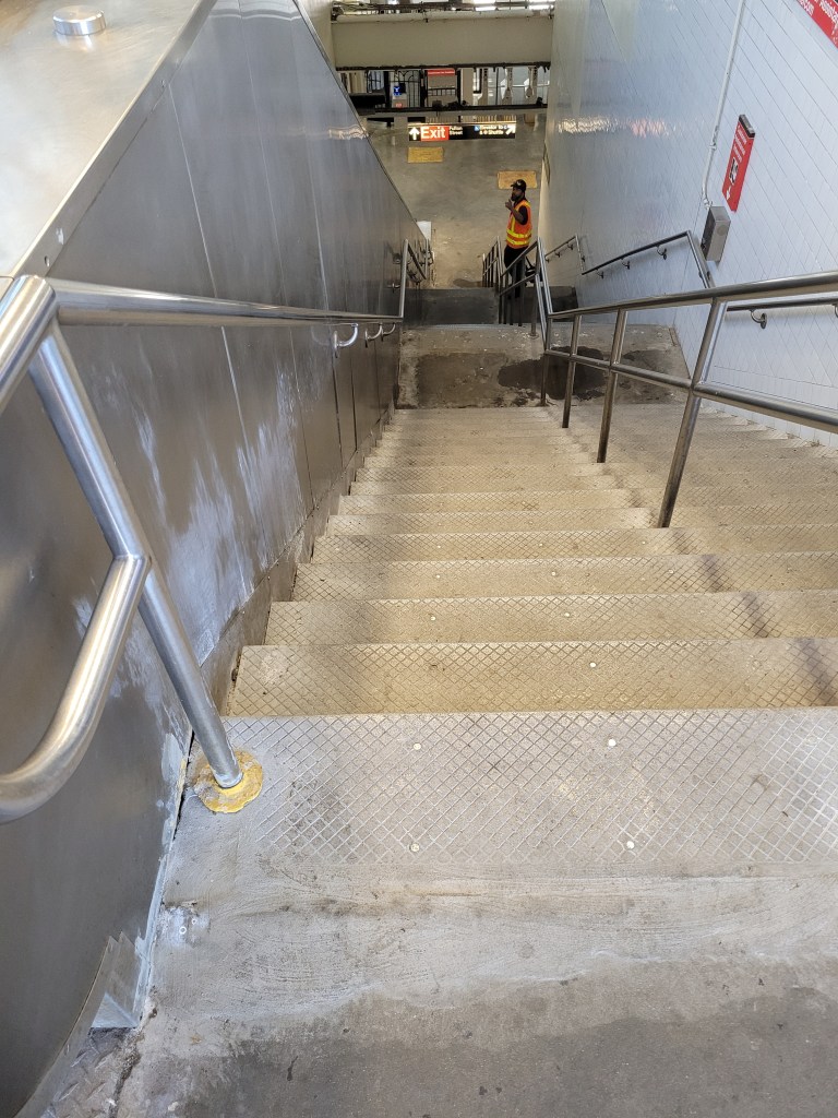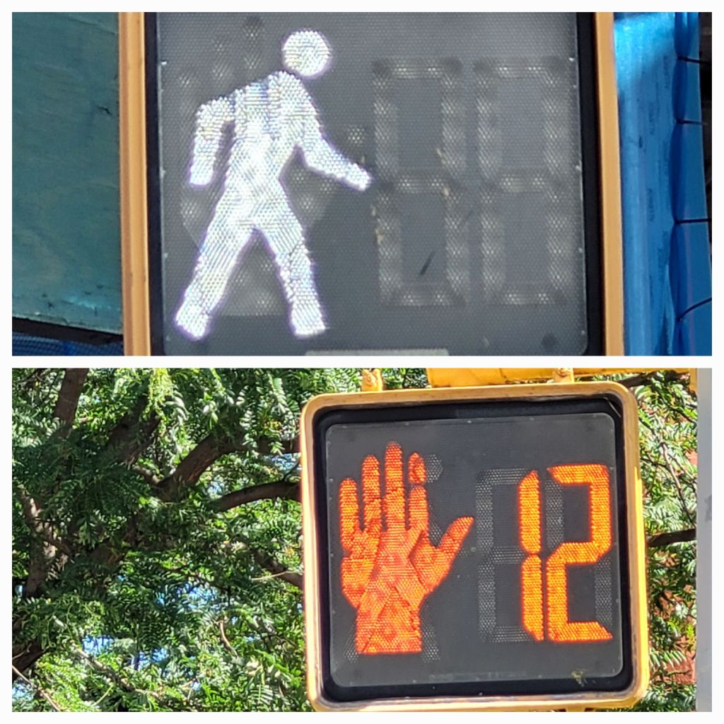 Nous passons à côté du temple du basket, l’Arena du Barclays Center… L ‘équipe de basket de Brooklyn ce sont les Nets qui évolue en NBA. Nous faisons très attention à bien traverser au bon signal. A retenir un compte à rebours pour nous prévenir du danger.