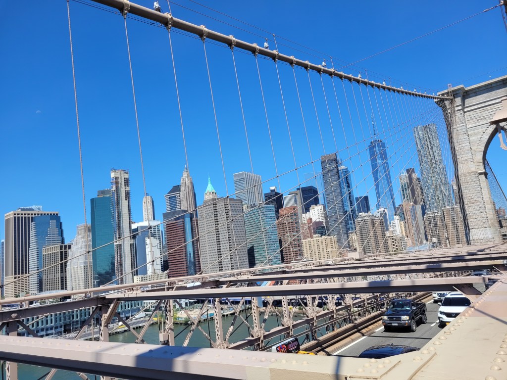 Franchir le pont est sensationnel ! Le monde entier s’y promène et quelle vue de New-York au loin, je devrais dire de Manhattan !