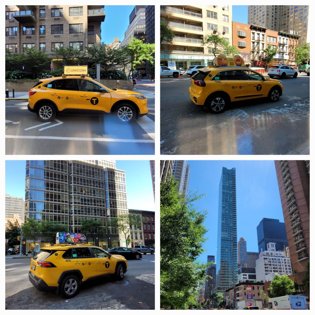 Des taxis avec la publicité sur le toit…