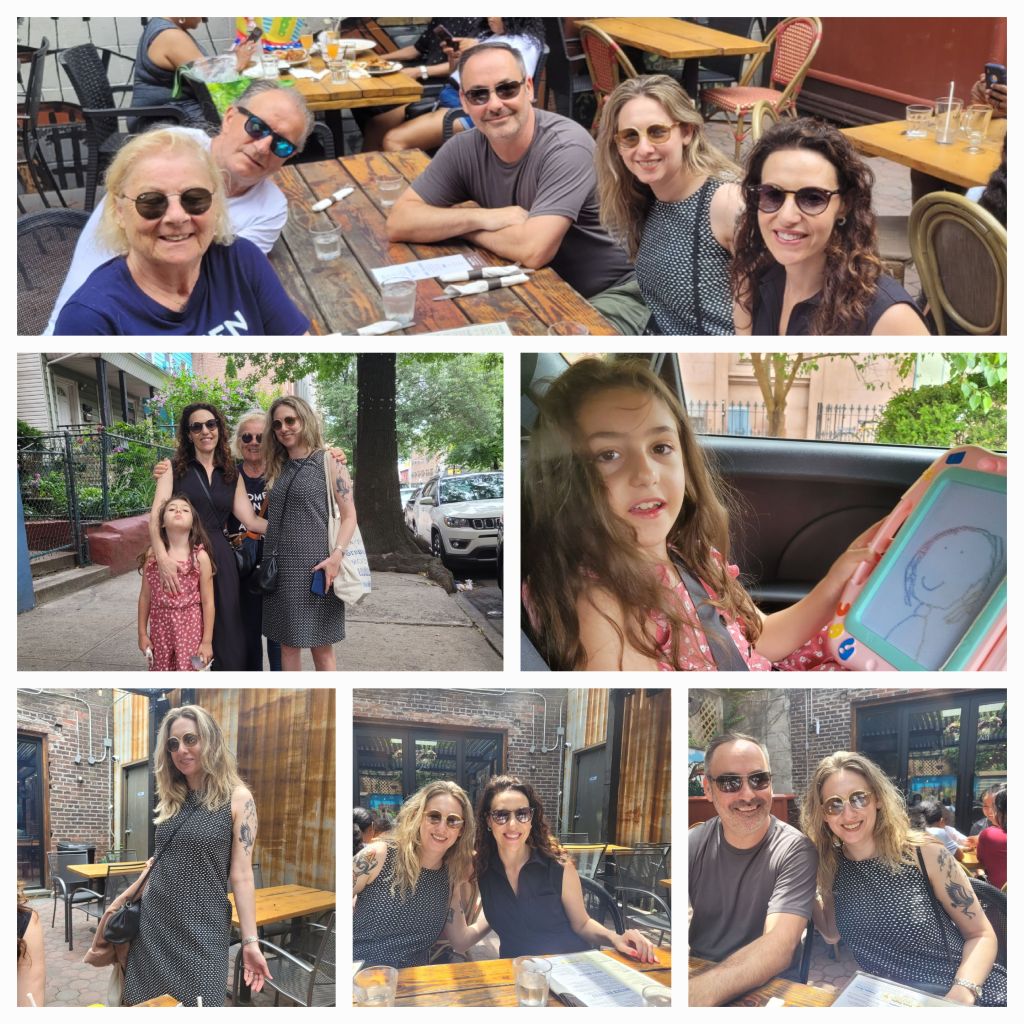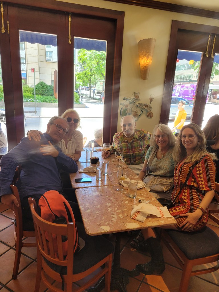 Passé le pont, nous prenons le métro pour aller à la 68ème rue pour un déjeuner avec mes cousins américains Richard et Joan et leur fille Rebecca. C’est l’histoire d’une famille russe originaire de Minsk qui a émigré aux USA en 1920, mon grand-père paternel arrivera en France en 1926, mon père naissant sur le chemin de l’exil à Dantzig. Cette famille américaine, ce sont les cousins germains du côté de mon père et depuis bientôt 4 générations nous maintenons les liens et sommes si heureux de nous retrouver soit en France soit aux Etats-Unis.