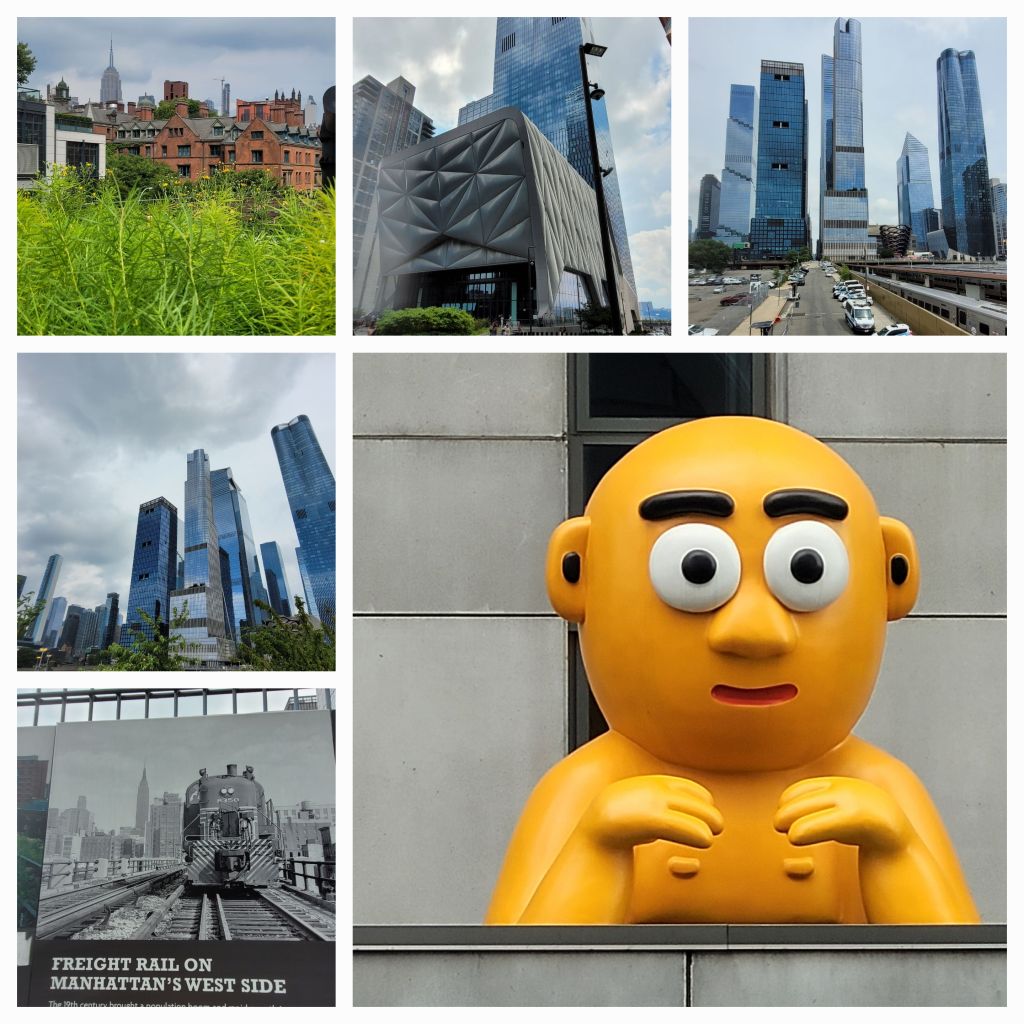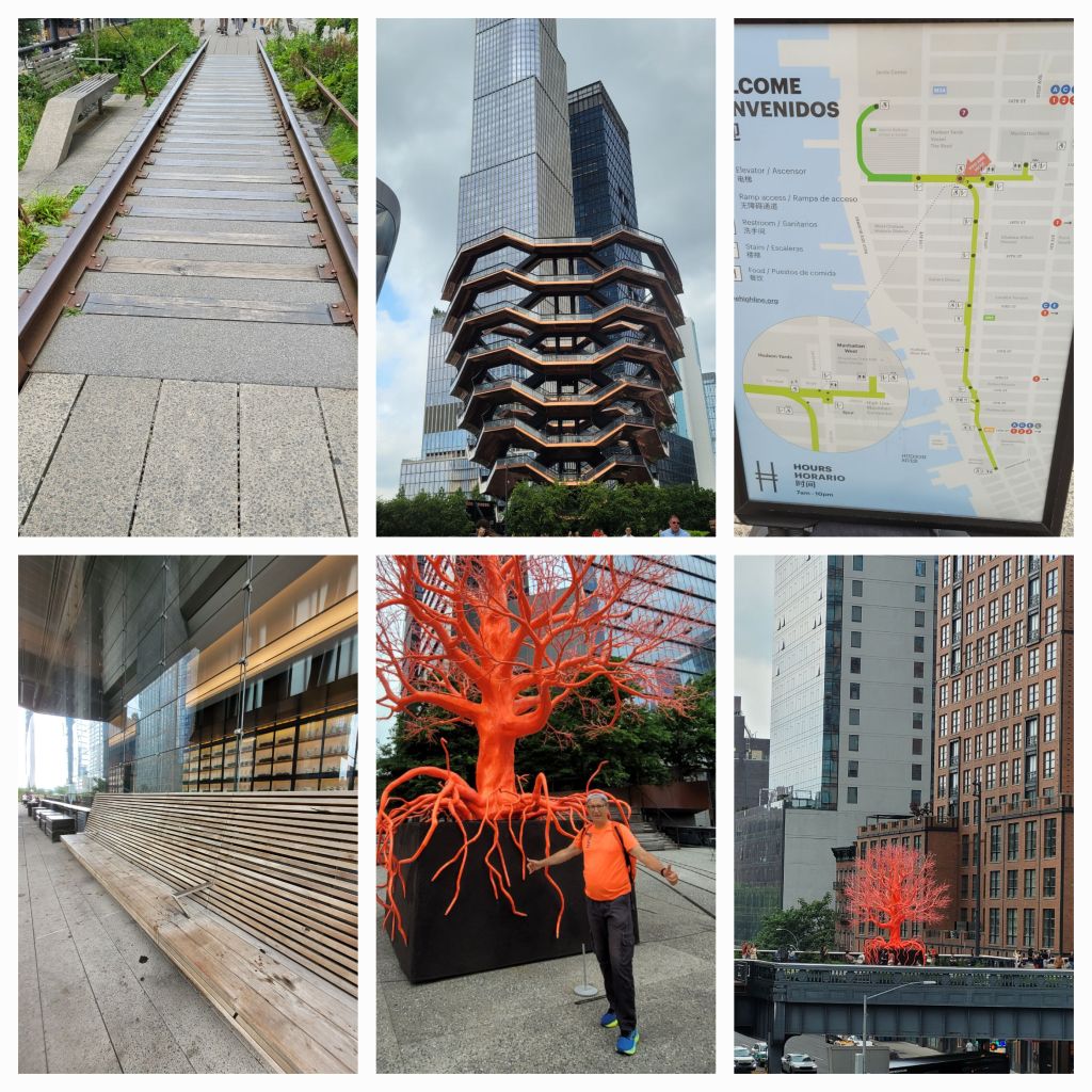 Nous prenons le métro jusqu’à la 34 ème rue Ouest de Manhattan pour rejoindre la HIGH LINE. C’est un parcours aménagé sur les anciennes voies de chemin de fer. Elle a été inspirée de la coulée verte de Paris dabns le 12ème. Un parcours sensationnel en hauteur qui fait découvrir les buildings de New-York sur 2,3 kilomètres avec quelques oeuvres d’artiste. C’est top top !!