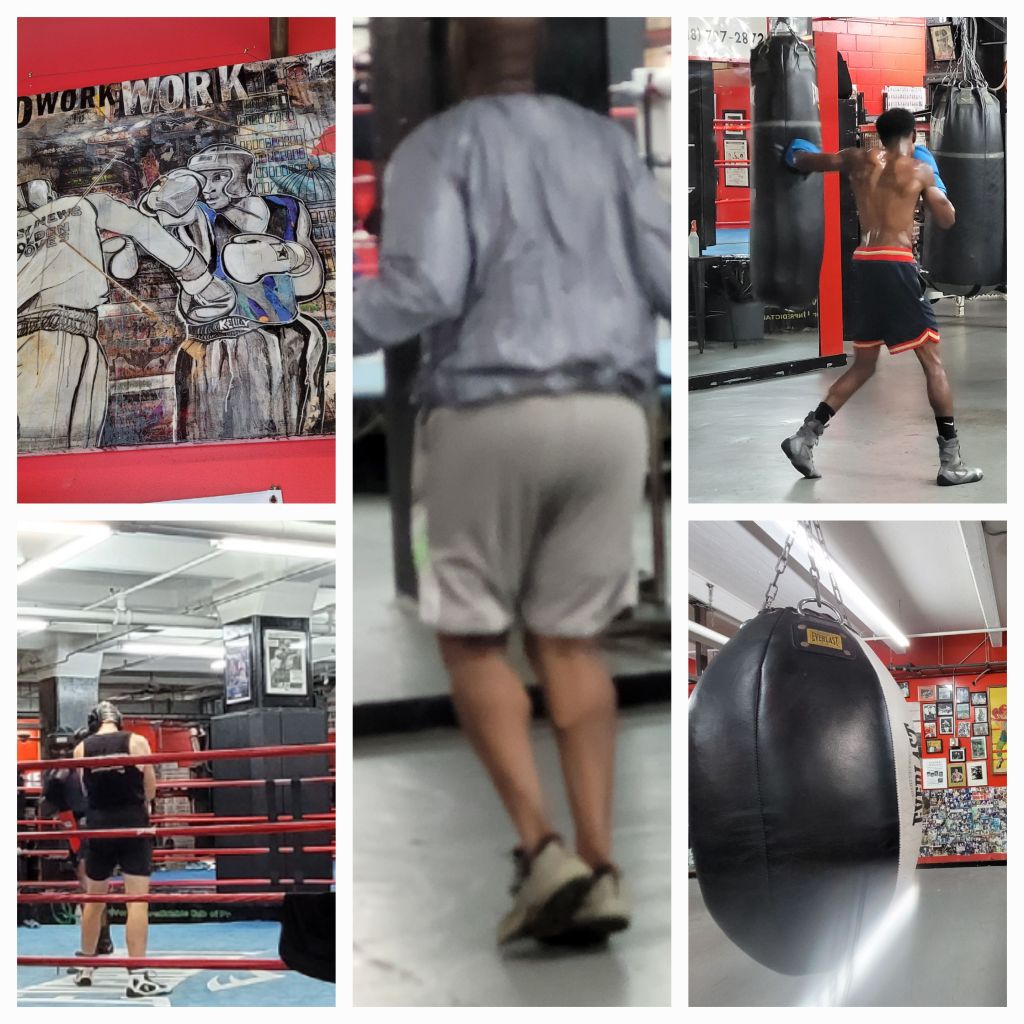 Nous rentrons dans une salle de boxe …3 rings et des entrainements…